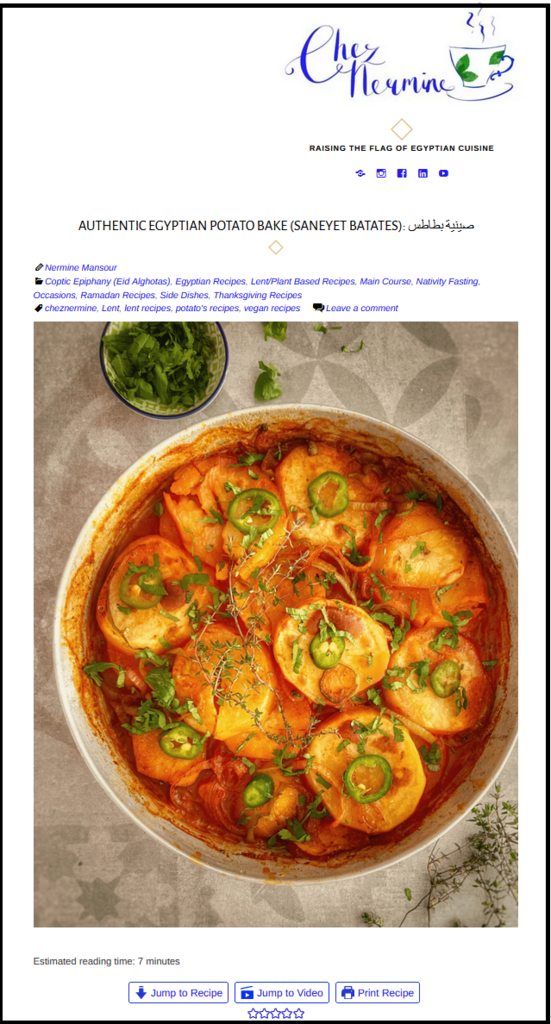 And then I found a food blogger with a VEGAN version! https://cheznermine.com/2026/03/27/authentic-egyptian-potato-bake-saneyet-batates/